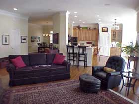 The living/family room, kitchen and dining room all flow seamlessly which makes this a great house for entertaining or simply moving about in the freedom of space. Your gateway to the private garden/bricked patio area is a door leading directly from the family room. |