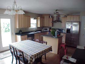 A dining room that opens onto the back deck & yard ... A half bath located conveniently near the side door leading to a concrete driveway. |