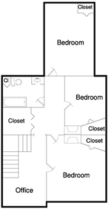 The 2nd of the 3 upstairs bedrooms has windows on 2 sides. A large space at the head of the stairs (southeast corner) can be a sunroom, an office or a kids play area. |
