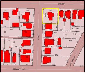 The gable-front-and-wing cottage is superbly framed by the gently sloping corner lot and nicely accented by a stately Rhododendron tree. Off-street parking is provided by an existing curb-cut on Polk St.