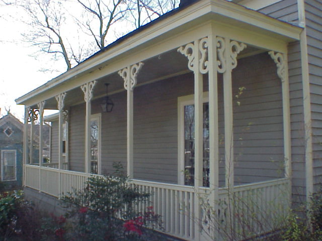 Elaborate exterior sawnwork on the two porches, 12 ft. ceilings in the original house, 4 fireplaces and a tin roof are characteristic of the homes built in the later 1800s.