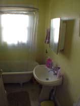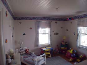 The tongue-and groove wooden ceilings glisten in the front bedroom (right).