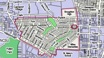Walk to Glenwood South Cameron Village Public Library State Capitol NC State University Broughton High School Wiley Elementary School St. Mary's School