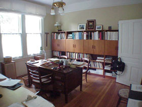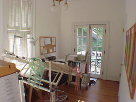 The Wellmans use as offices the one above and the adjoining room below that has outside entrances to both the front and back yards. The two offices together could become a 1st floor master suite.