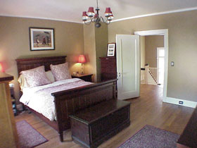 The 2 upstairs tile baths are updated and 3 of the 4 bedrooms have new ceilings. The master bedroom suite shown above has a walk-in closet.