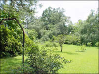 Trees, lush grounds and gardens and a great big porch that comes off from the livingroom make you feel at home. Nice lines and beauty add to already sturdy construction.