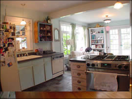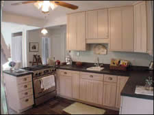 gas Jenn-Air range, dishwasher, new cabinets, tile floors