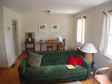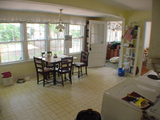 This is the view looking from the front of the living room toward back with kitchen on the left.