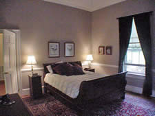 This large bedroom displays Fred Crouch’s craftsmanship in managing the transition from the older to the newer sections of the home. The addition includes a large daylight utility room.