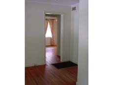 This is the view from the living room looking toward the back bedroom and the bath that has classic tiling.